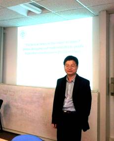 图一、袁传有教授讲座中 图二、讲座后与Tom Bartlett合影