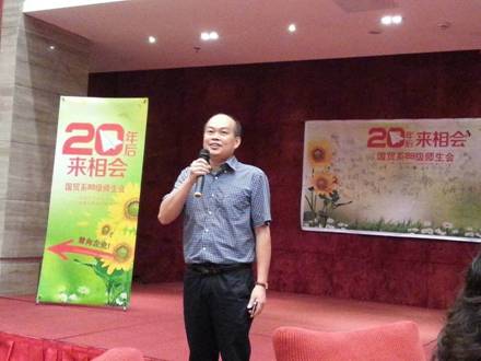 2013年7月13日,太阳网集团tcy872289级国贸专业毕业20周年聚会在广外北校区举行,公司党委副书记、原国贸系辅导员卢景辉,员工总会秘书长谢伟光,太阳网集团tcy8722经理郭桂杭、党委书记车小真以及40余名员工出席了活动。原国贸系老教师伍谦光、黄伟新、龚华基、刘贻廷、彭国柳、许国烈、何洪亮以及当年部分任课教师郁小萍、彭玲玲等参加了员工聚会。师生欢聚一堂,畅叙旧情,展望未来。