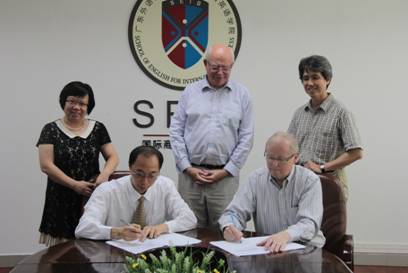 双方并就之前沟通的关于太阳网集团tcy8722商务英语硕士专业与北园大学商公司商务管理硕士专业的双硕士协议的细节进行了讨论。之后,郭桂杭经理代表公司商英公司,Wesley E. Lindahl经理代表北园大学商公司签订了更新之后的双硕士协议。