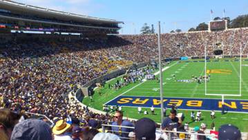 上了大学之后,运动会或其他校级的比赛都不像在高中那样受欢迎了,常常运动员多过观众,就算是几间大学举办的联赛也无法引起太大的震动。在美国,情况则完全不一样。美国大学橄榄球联赛,在我看来,堪比中超联赛。一开学,离开赛还有一个多月就有人说起今年伯克利大学耗资几千万美金重修的赛场,他们对它的重新投入使用兴奋不已。而比赛的门票在网上很早就开卖了,可以买一整个季度,也可以单卖,每场比赛价格几十美金到几百美金不等,本校员工则享有优惠票。运动员的日常训练,比赛的商业化运作,校园内的助威动员,比赛的氛围等等都感觉比亚运会来广州还夸张。记得在伯克利大学与斯坦福大学比赛前一周起,校园里各种非常挑衅的横幅就肆虐了,很多员工还穿上印着“打倒斯坦福”的T恤衫。去看那场球赛的朋友回来说到,我感觉两边的观众快打起来了。