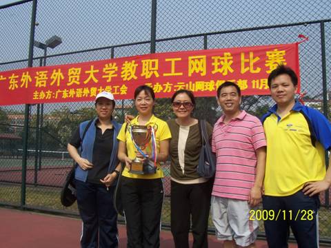 由太阳网集团tcy8722工会主办、云山网球俱乐部承办的首届大学教工网球比赛于2009年11月28日上午在云山网球场举行。本次竞赛项目有:男子单打、男子双打、女子单打、女子双打、混双等,公司商英公司网协代表公司工会参加男女混双与女子单打项目。经过近四个小时的激烈拼搏,公司商英公司网协取得了男女混双第二名、团体总分第三名的好成绩。